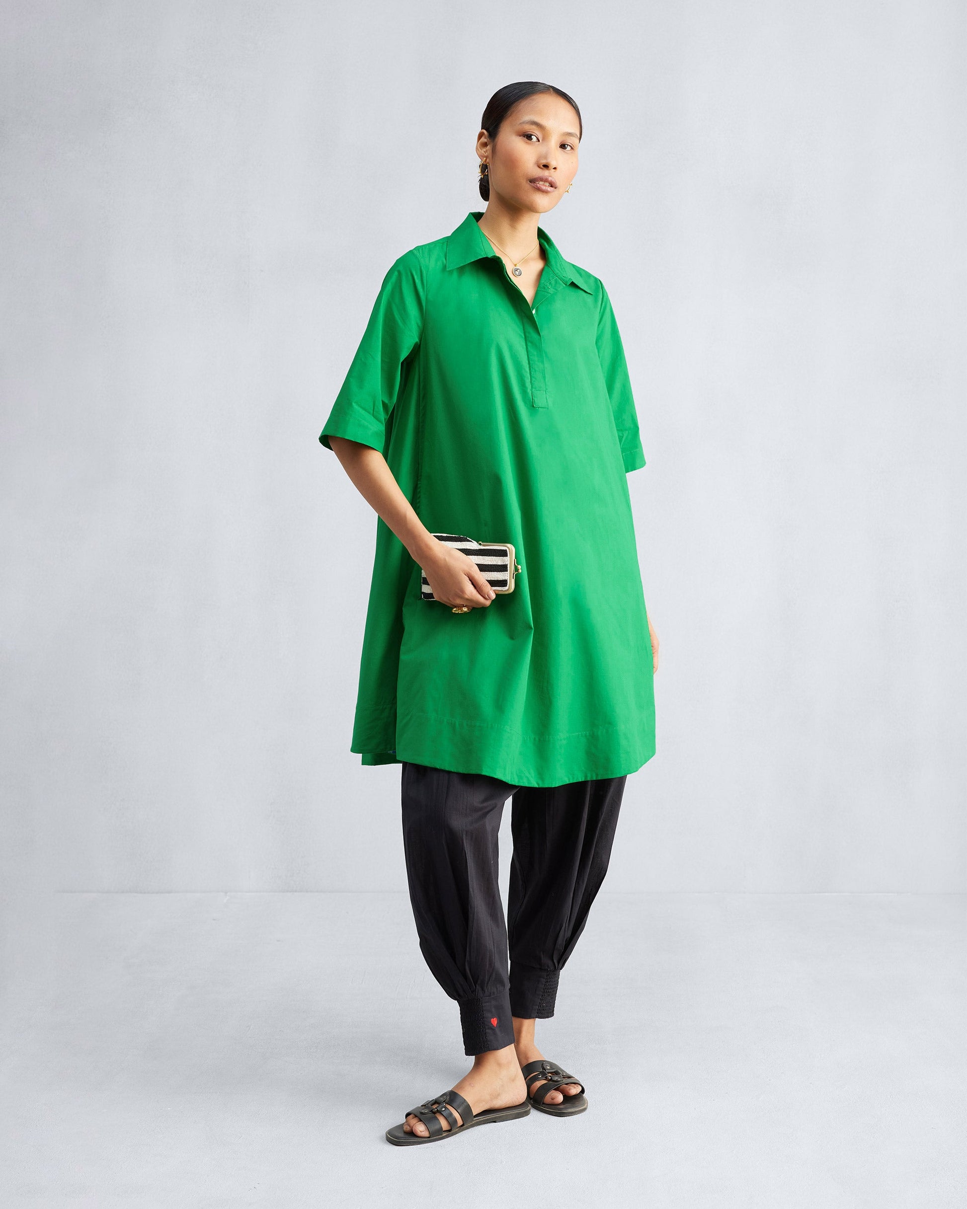 - The silhouette is fun, playful and chic. The green hue makes this an easy pick to spend your day in.