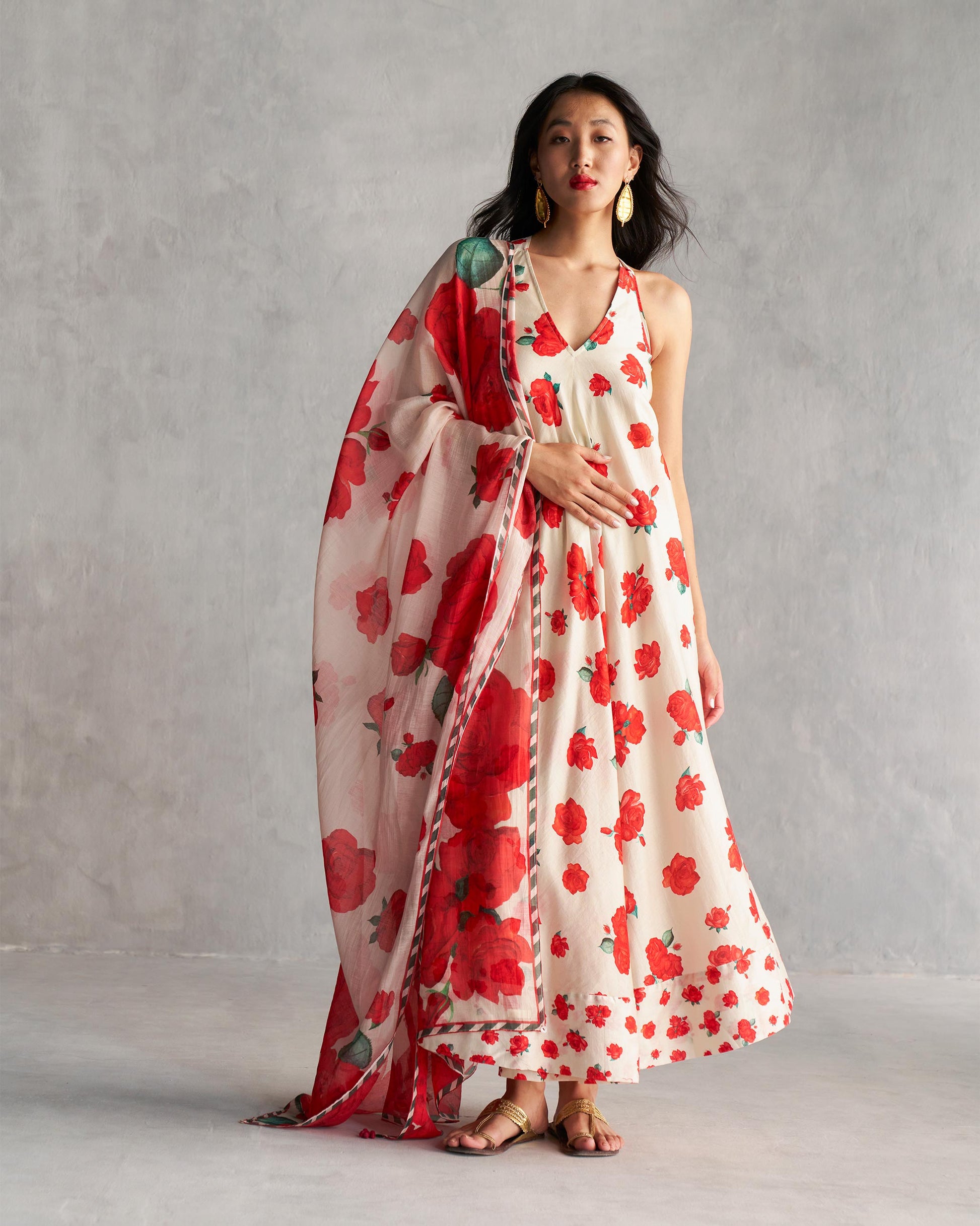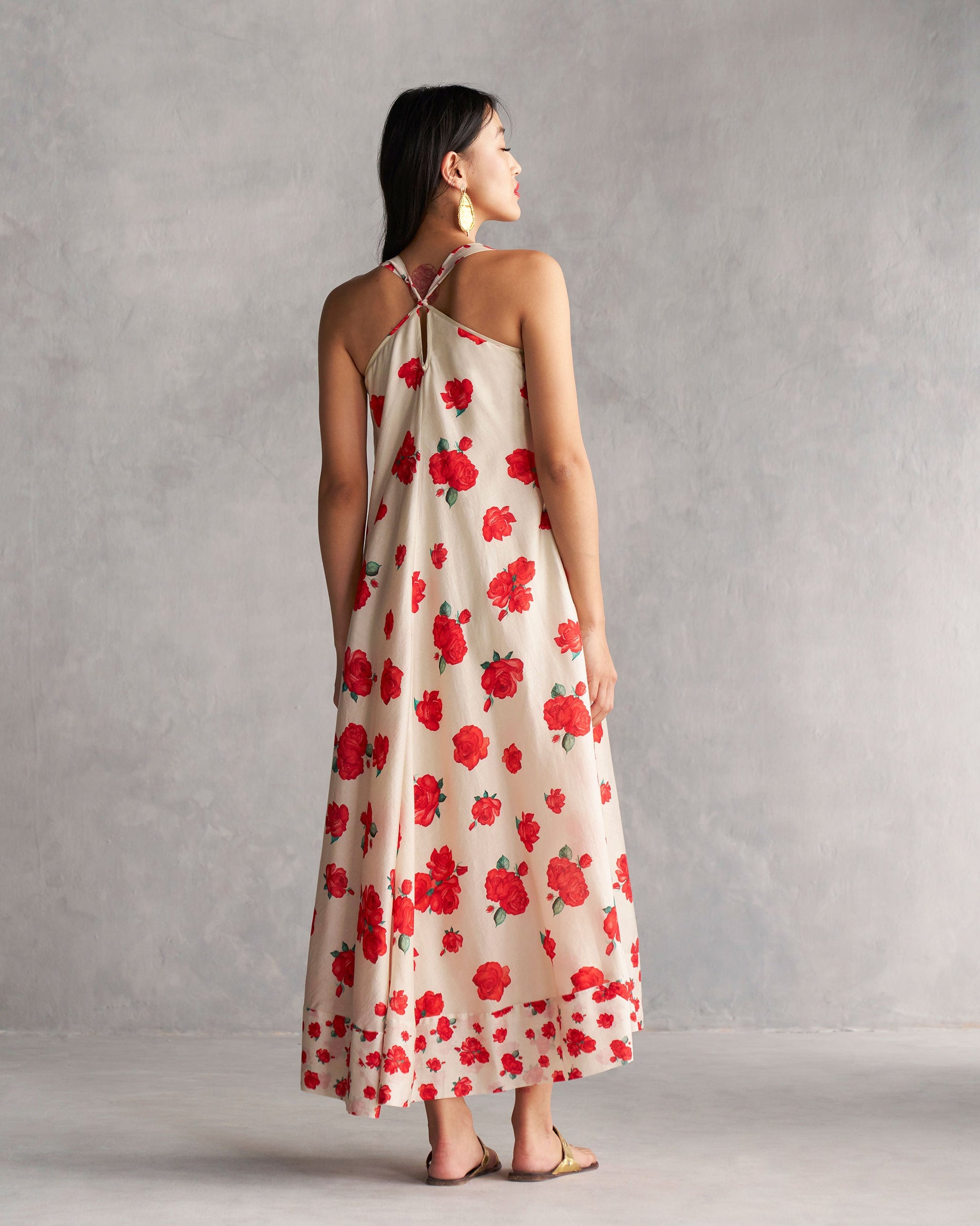 - Nicobar¡¯s Akira Twistback dress is tailored for around-the-clock activities, it comes in a super relaxed fit. It has a beautiful print of red roses on an ivory background. Inspired by the Thai culture of offering flowers as a sign of respect and love, this dress is a wonderful piece to add to your wardrobe.