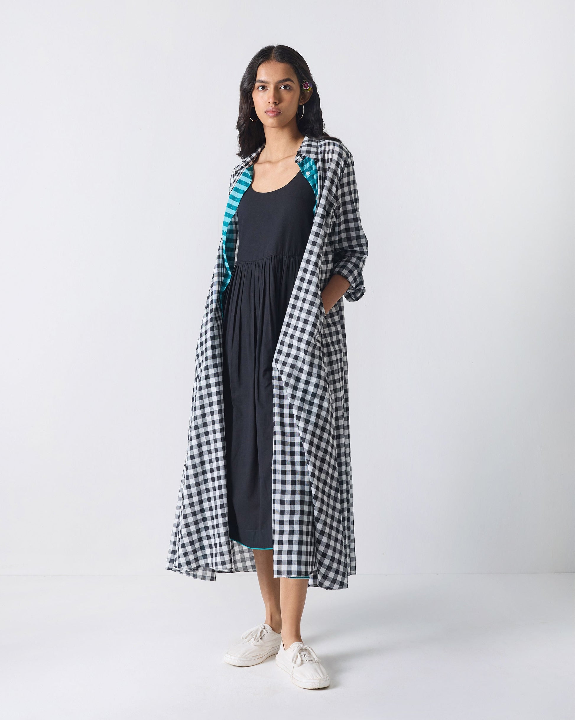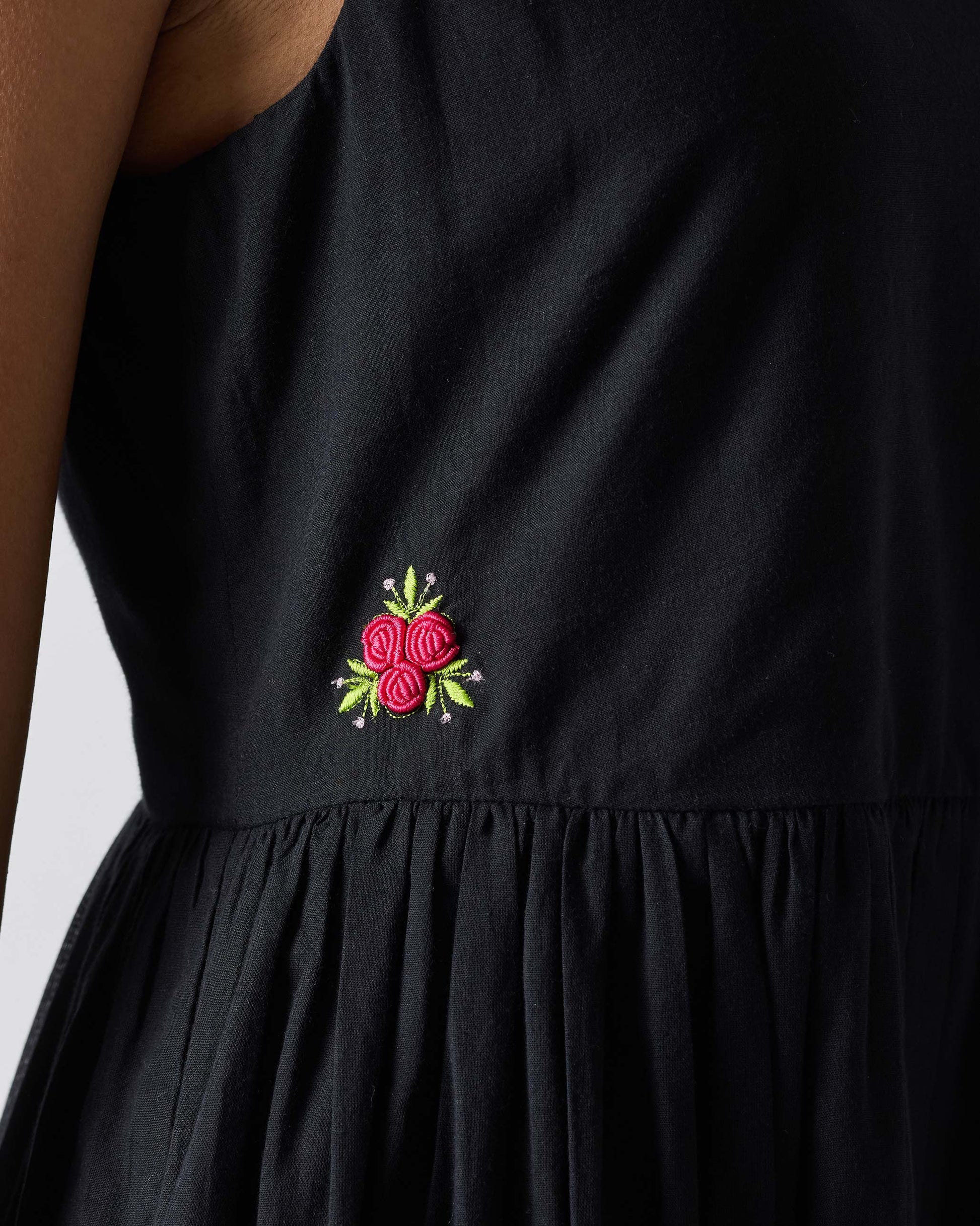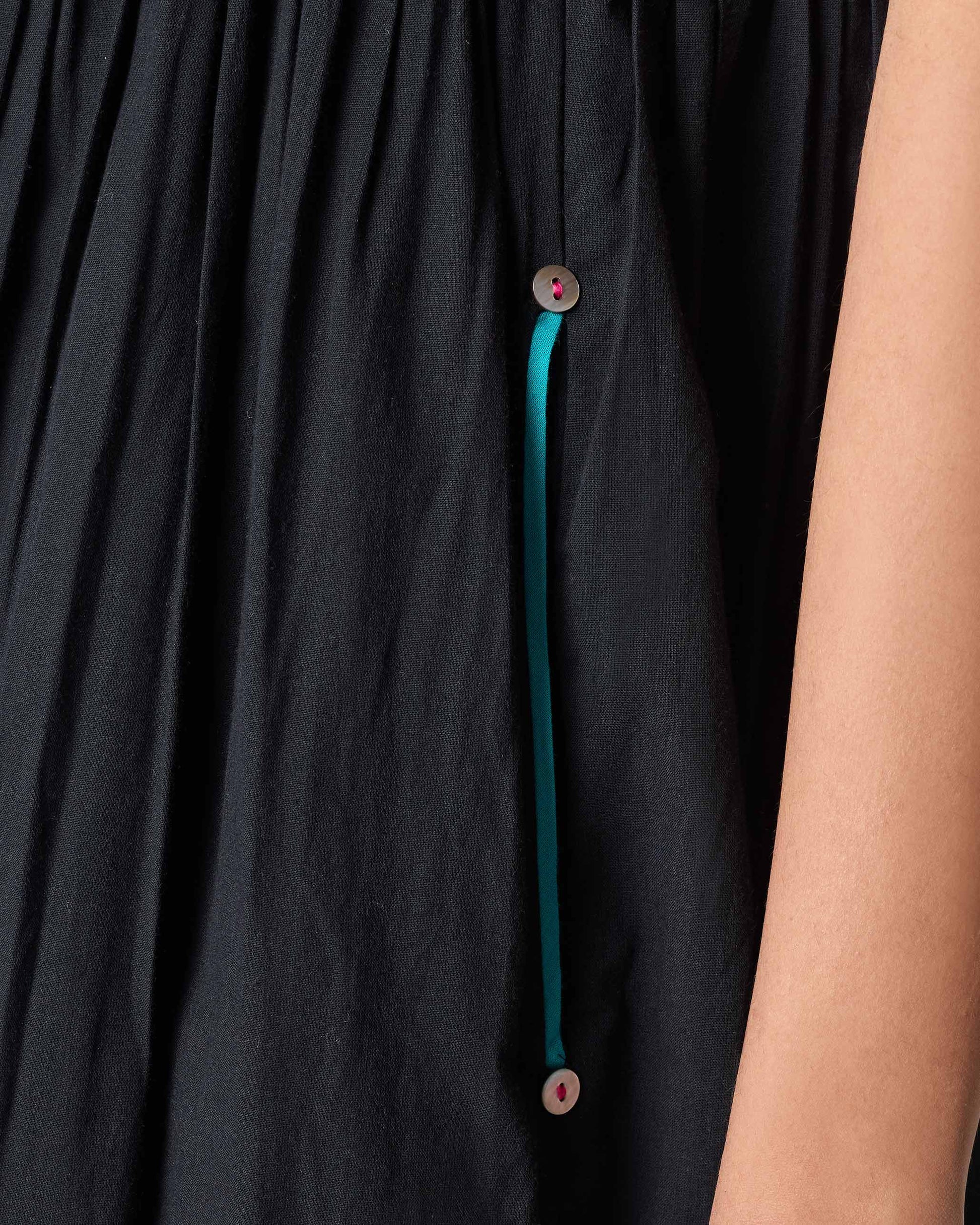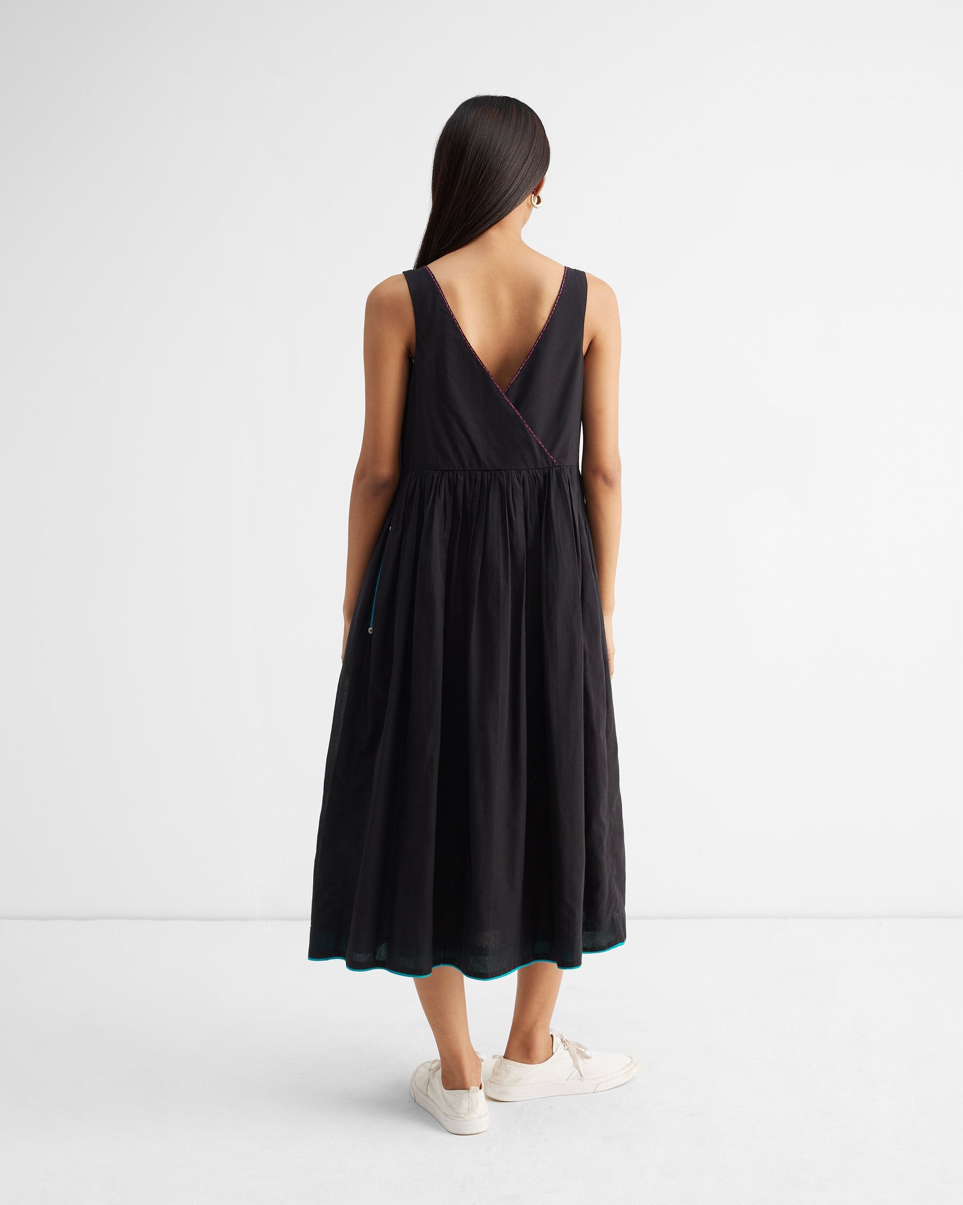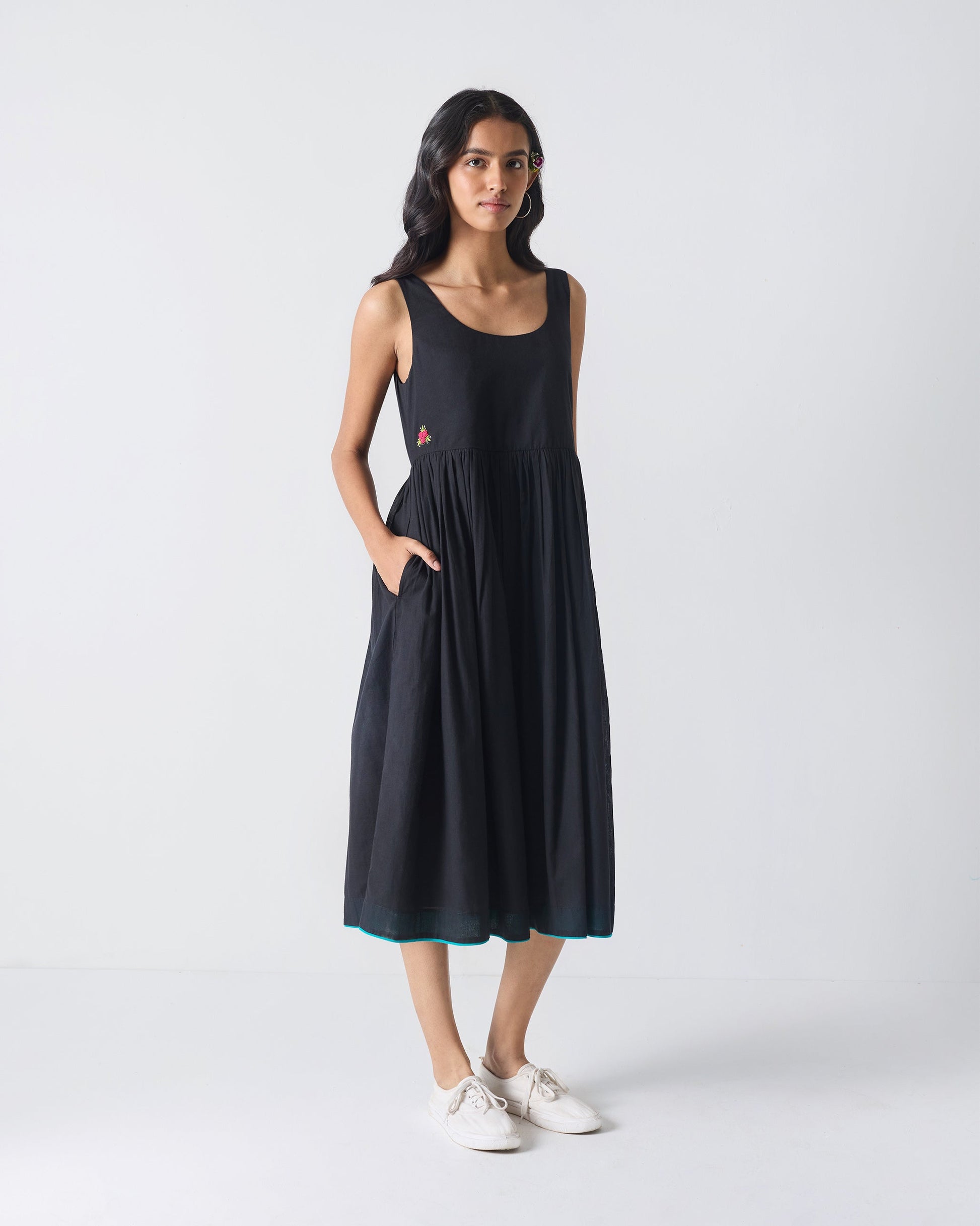 - The Ashwini Dress is a black, sleek and timeless piece crafted in soft yarn dyed cotton