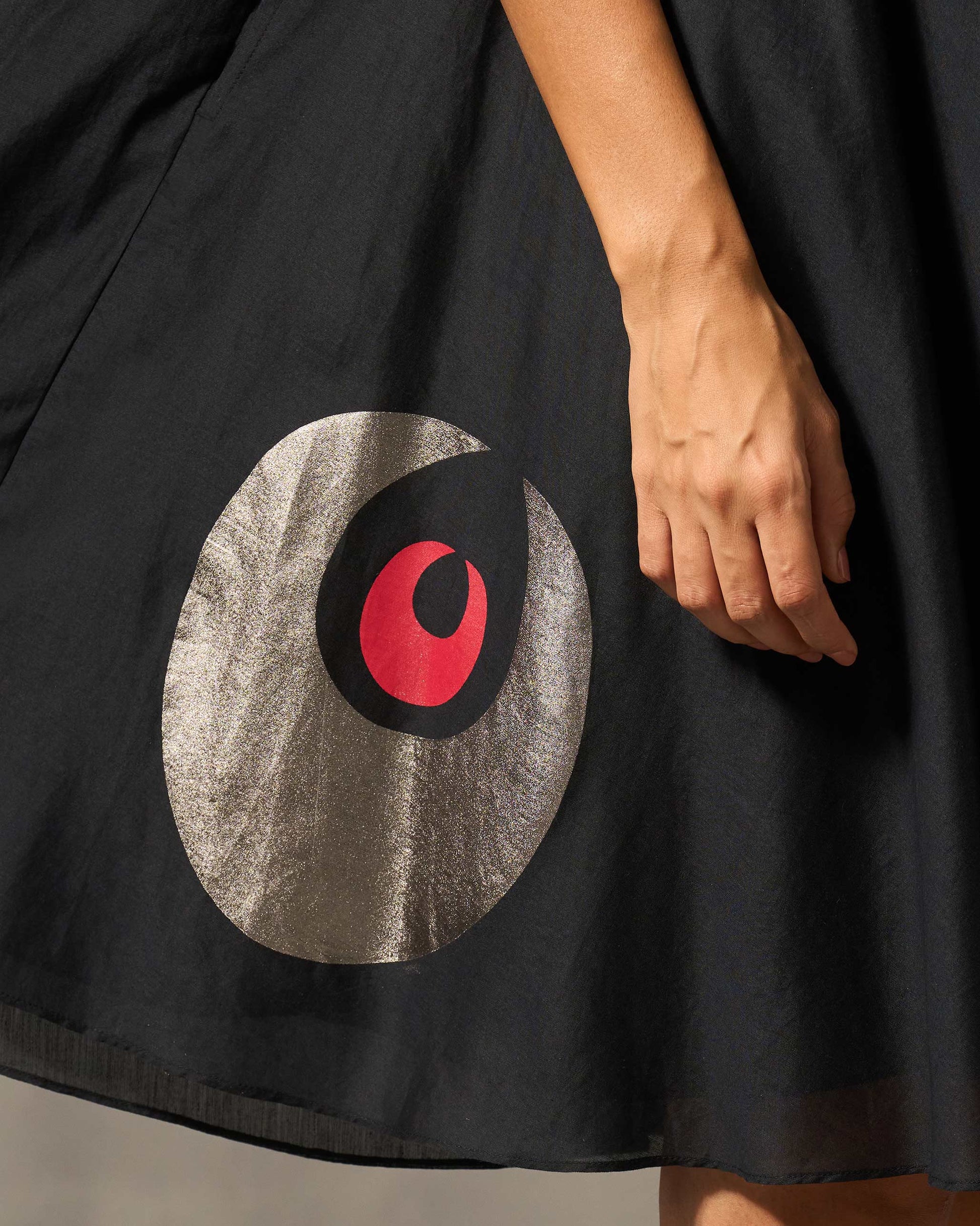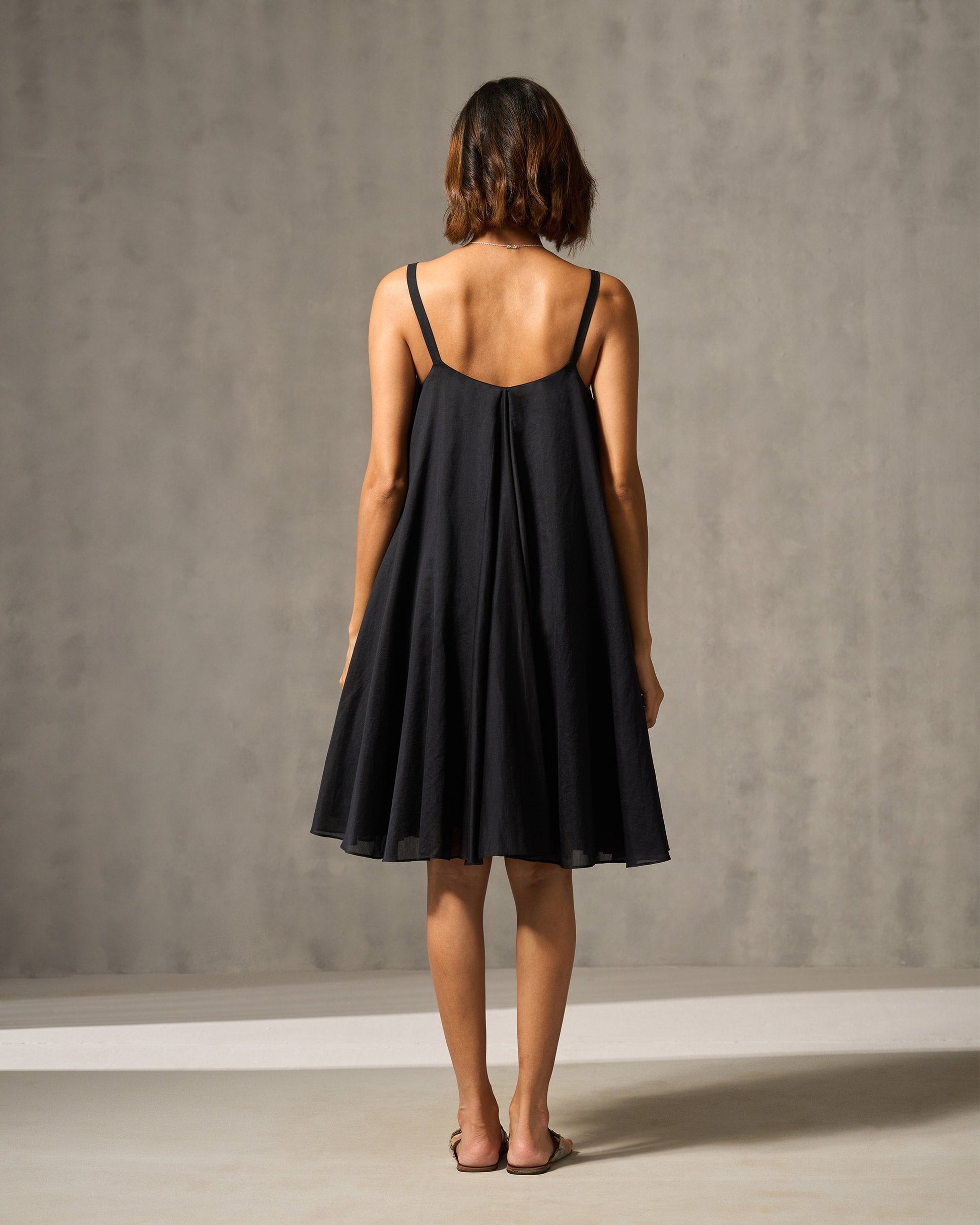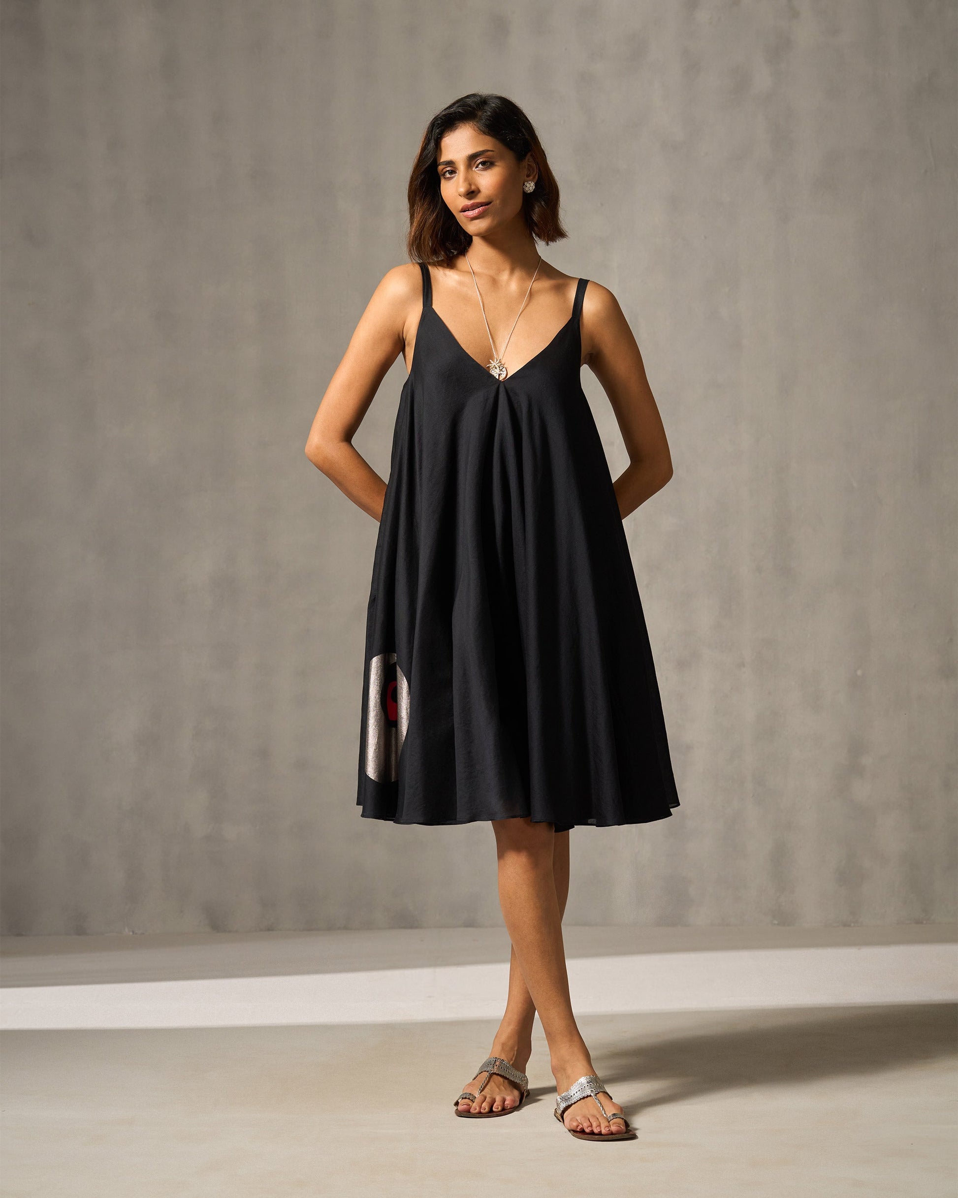 - The strappy Berber Dress makes a splash in black with its romantic silhouette and foiling, making it a statement piece.