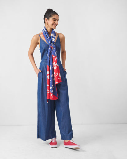 - The Bow Jumpsuit in cotton denim is designed with a clean silhouette and an easy, flattering fit¡ªfinished with a tie-up detail at the back.