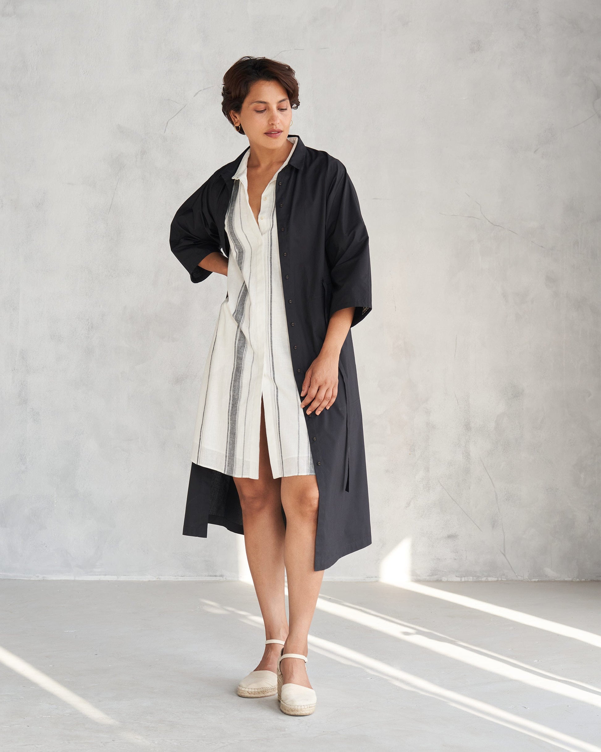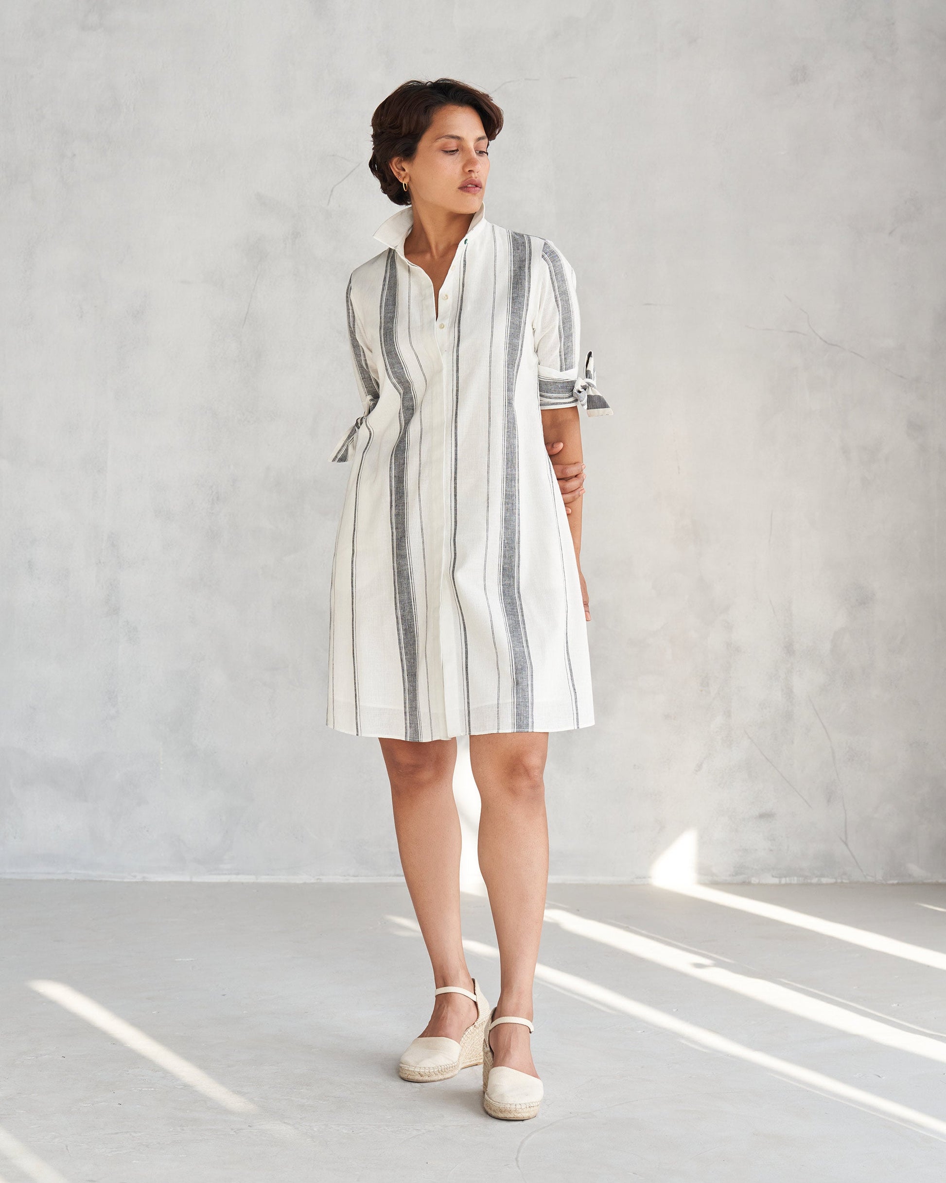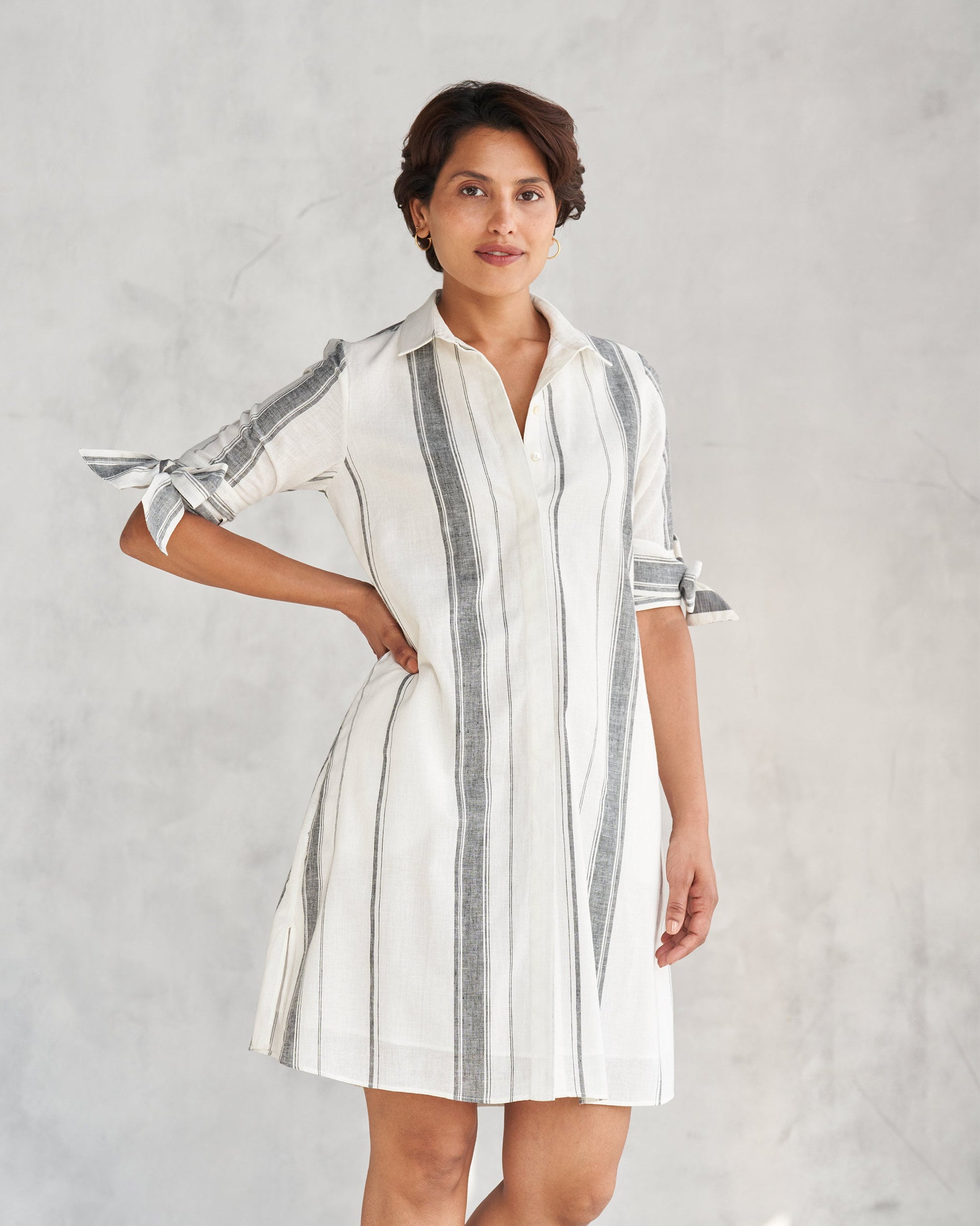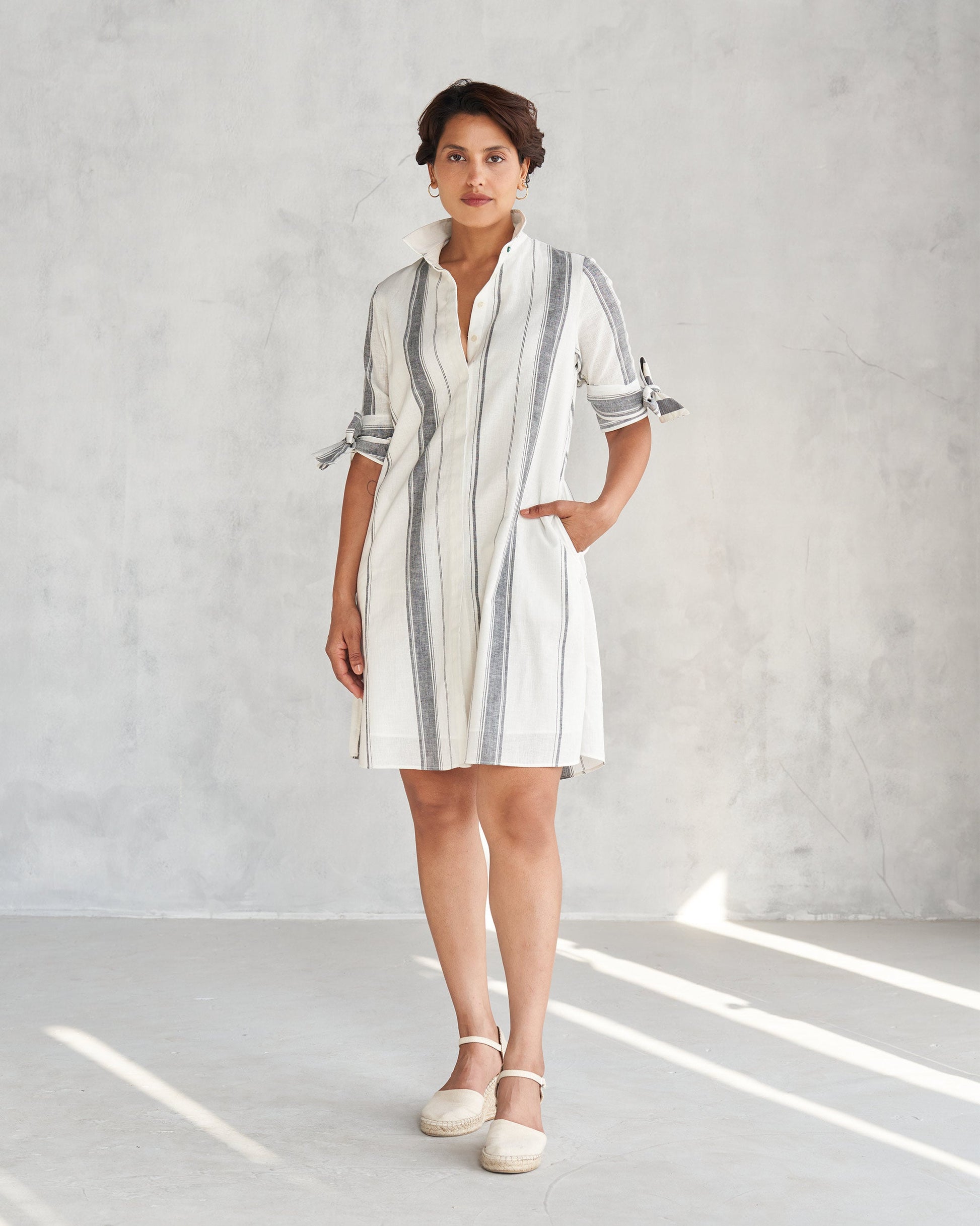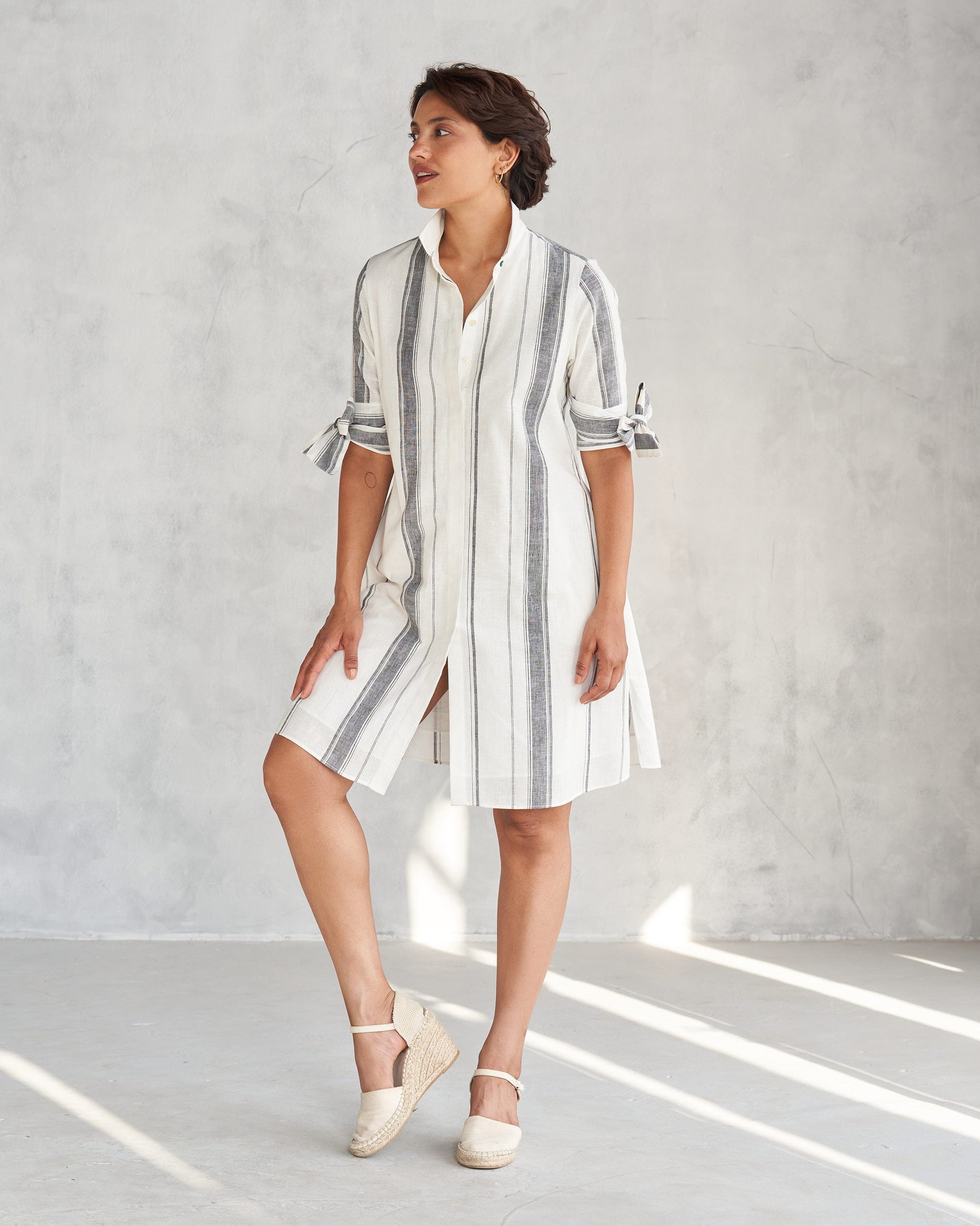 - Feeling fancy but want to stay comfy? Our Collared Dress in ivory crafted in cotton linen is a fashion must-grab.