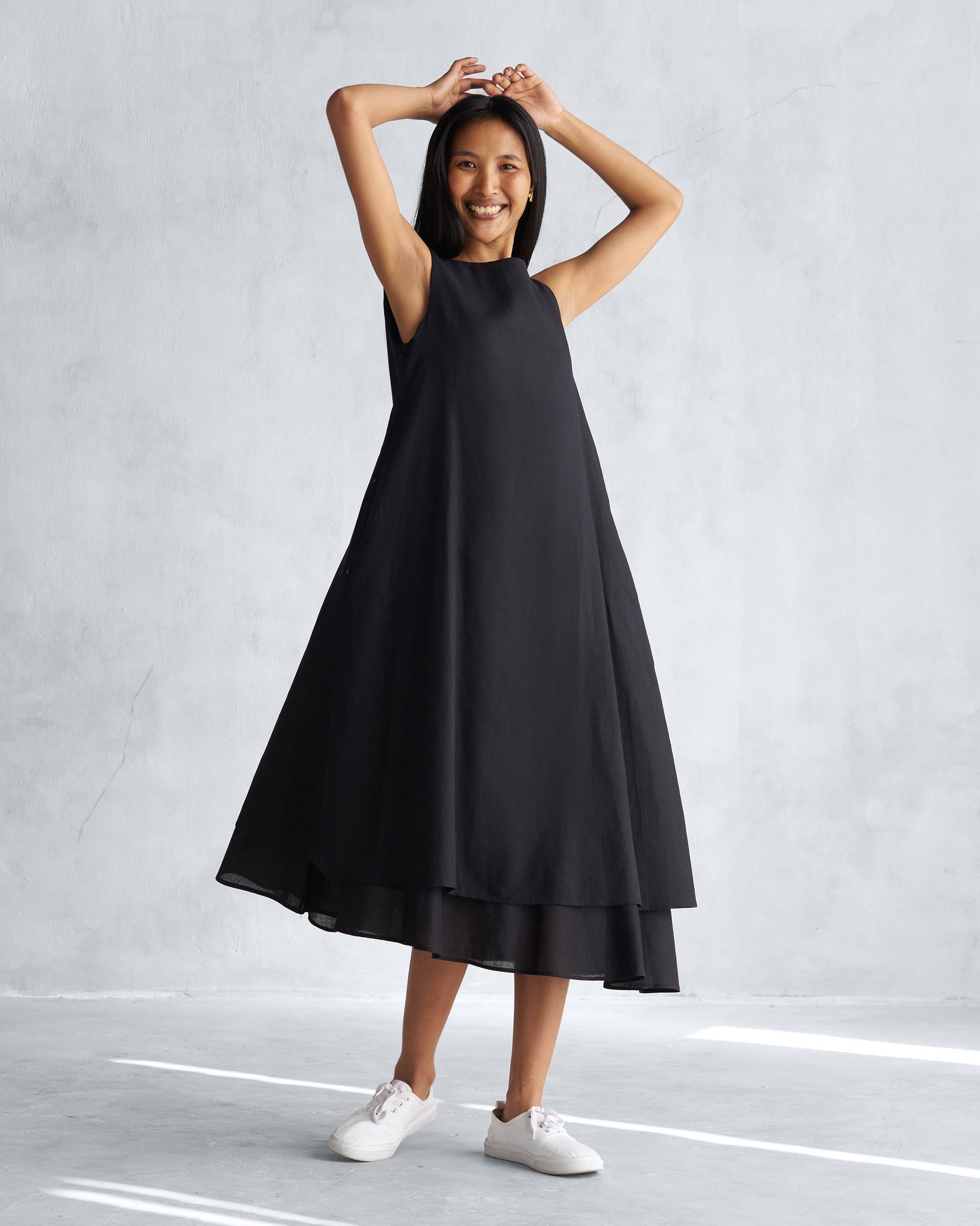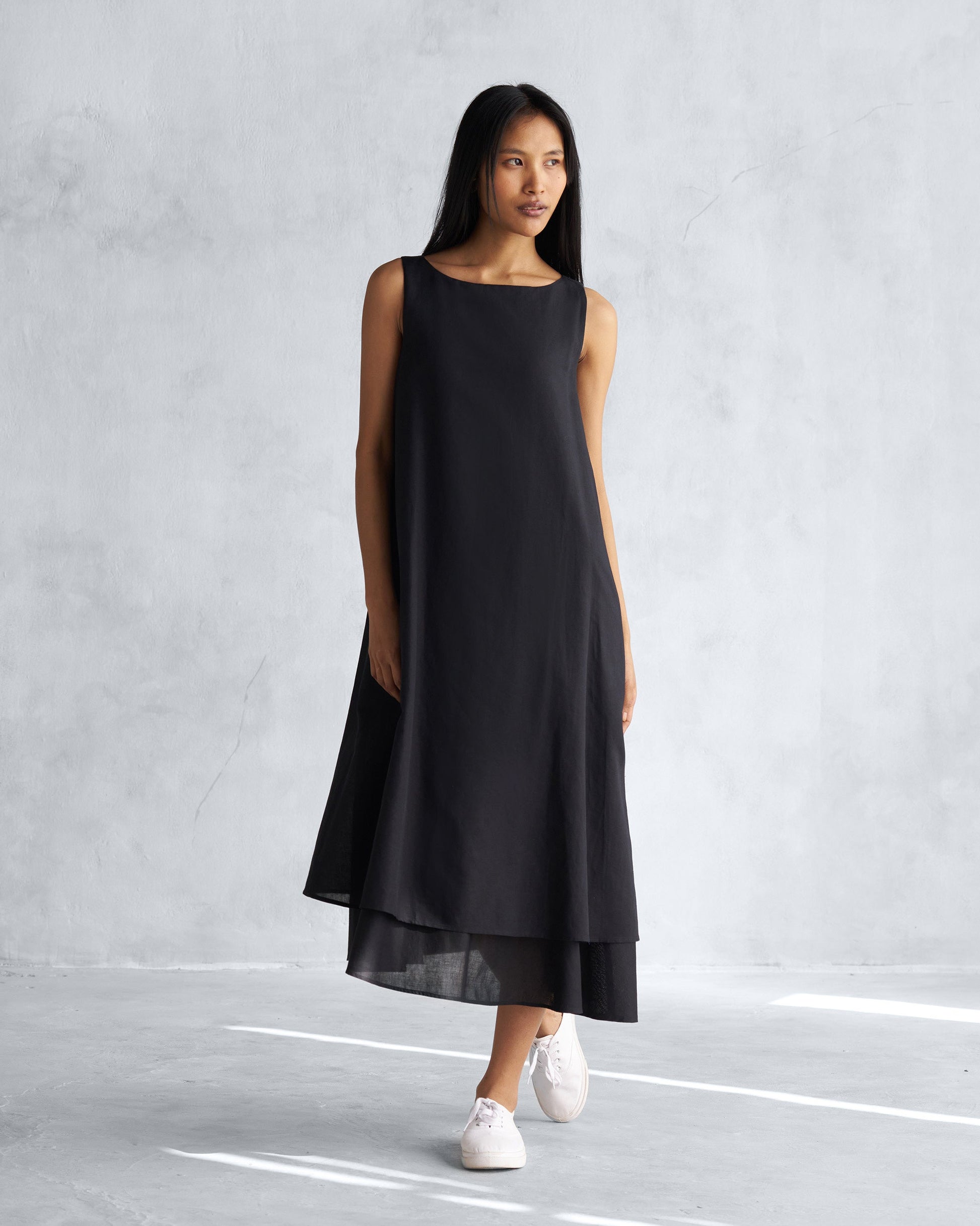 - Built to be a staple for all seasons, our double layer dress crafted in linen cotton is great for a day at work or a meal with friends.