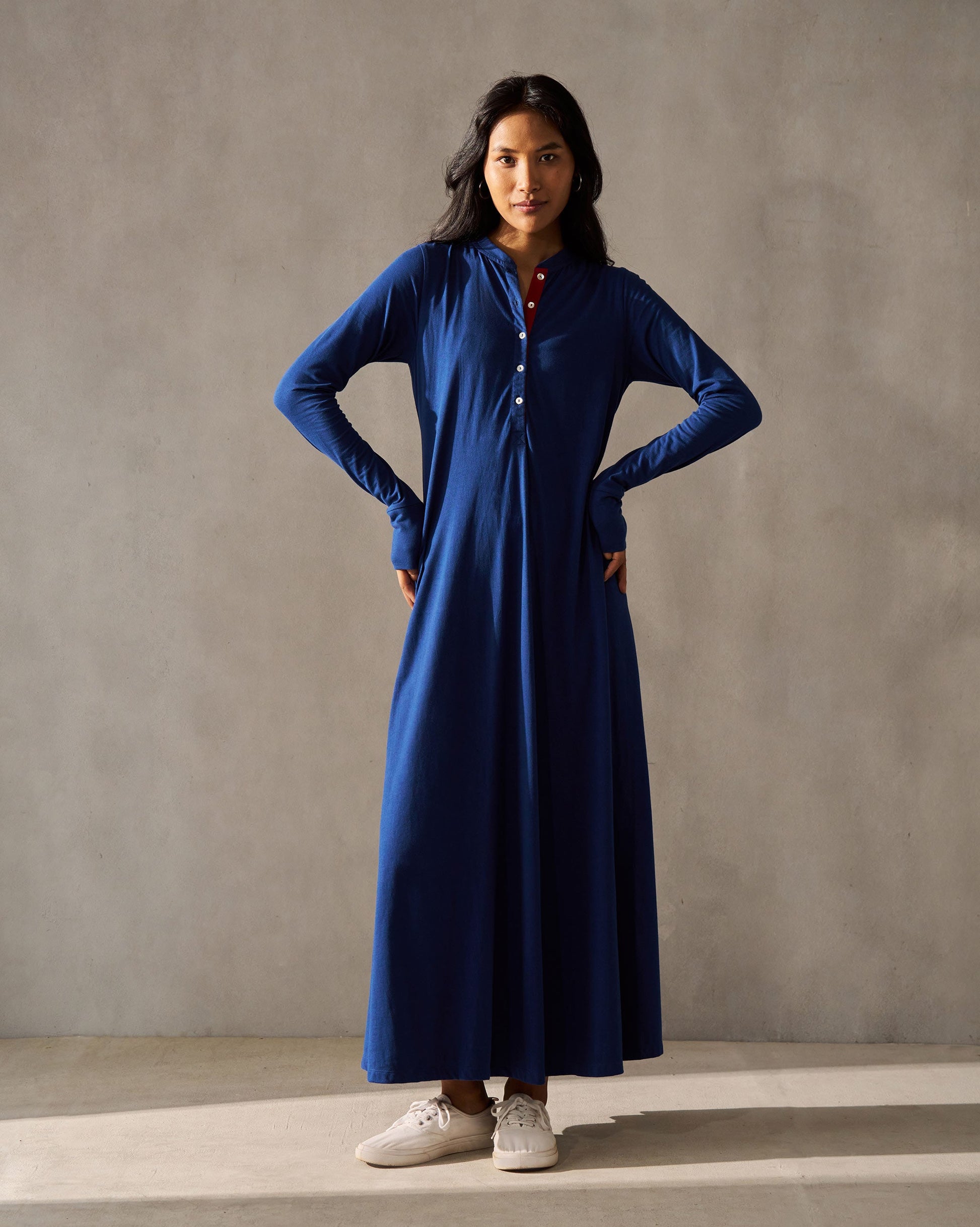 - Whether it's a casual day out or a special evening event, the navy Longline Jersey dress is a wardrobe classic. We'll be wearing this all year round- it works effortlessly for everything, from the boardroom to drinks to dinner.