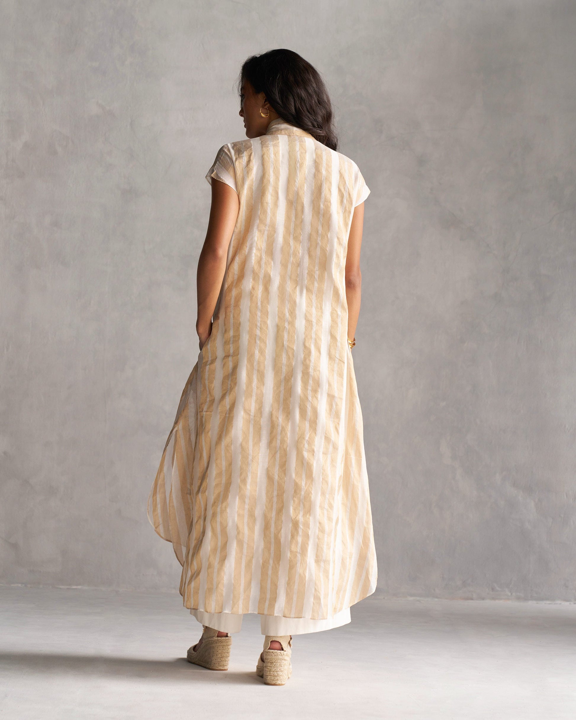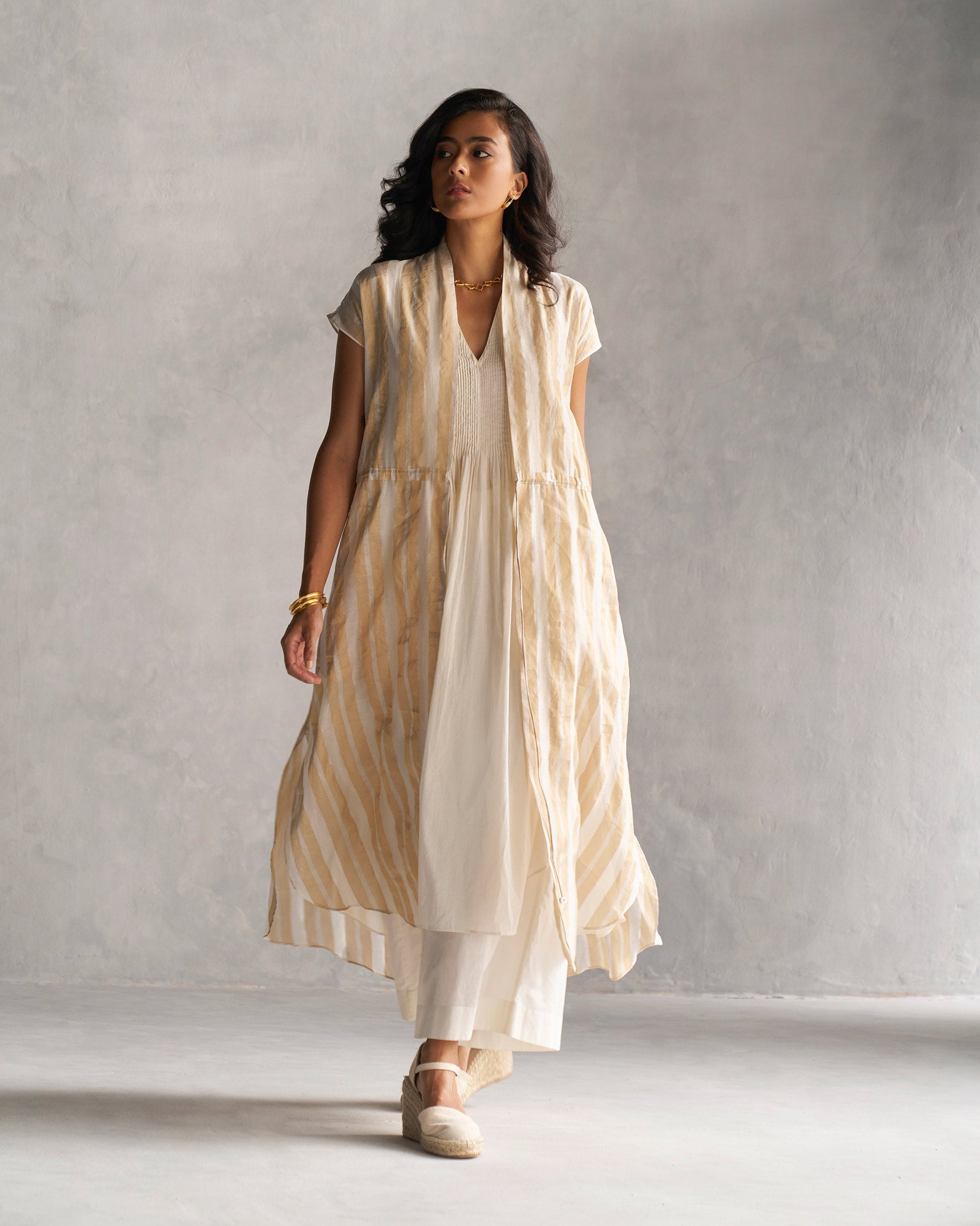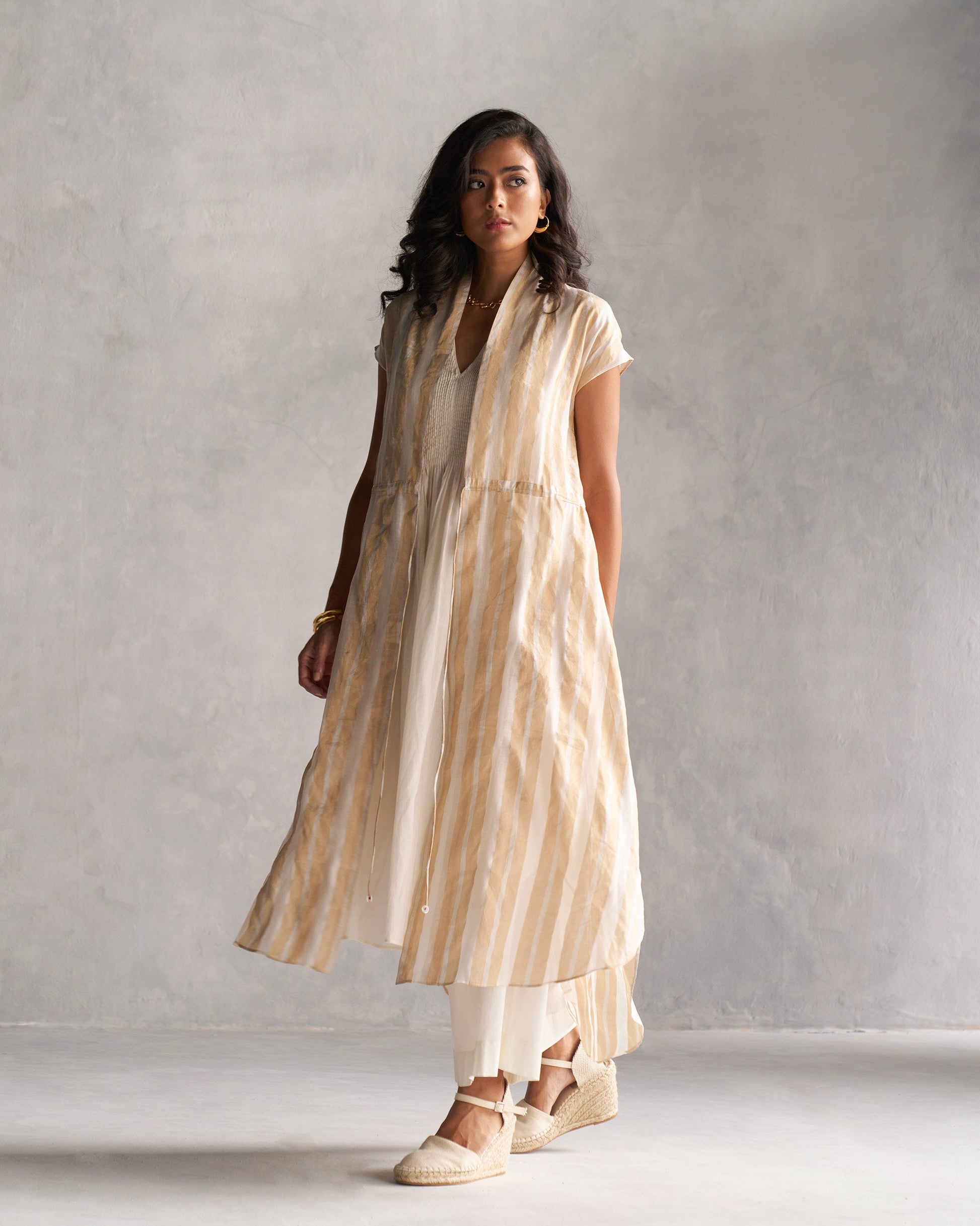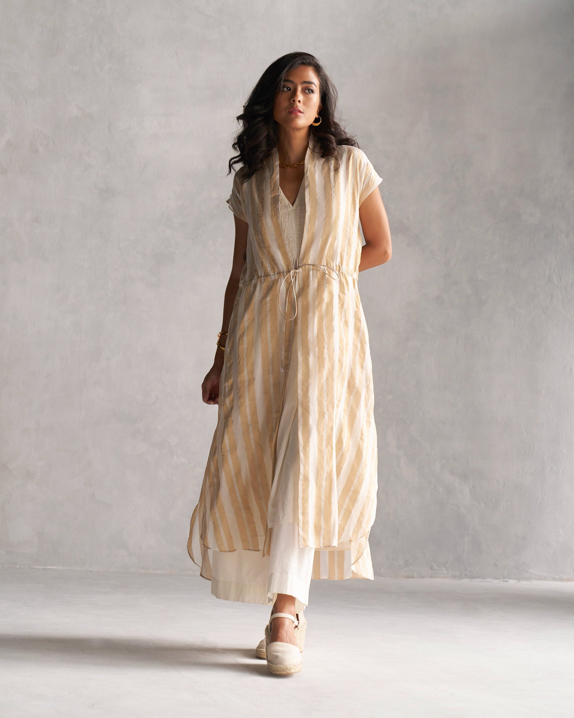 - In ivory and gold this chic overlay is your go-to staple for the festive season. Perfect for all occasions, big or small¡ªpair it with a kurta or layer with a sari to switch things up. Adjust to size with the drawstring, and keep your essentials in the pockets