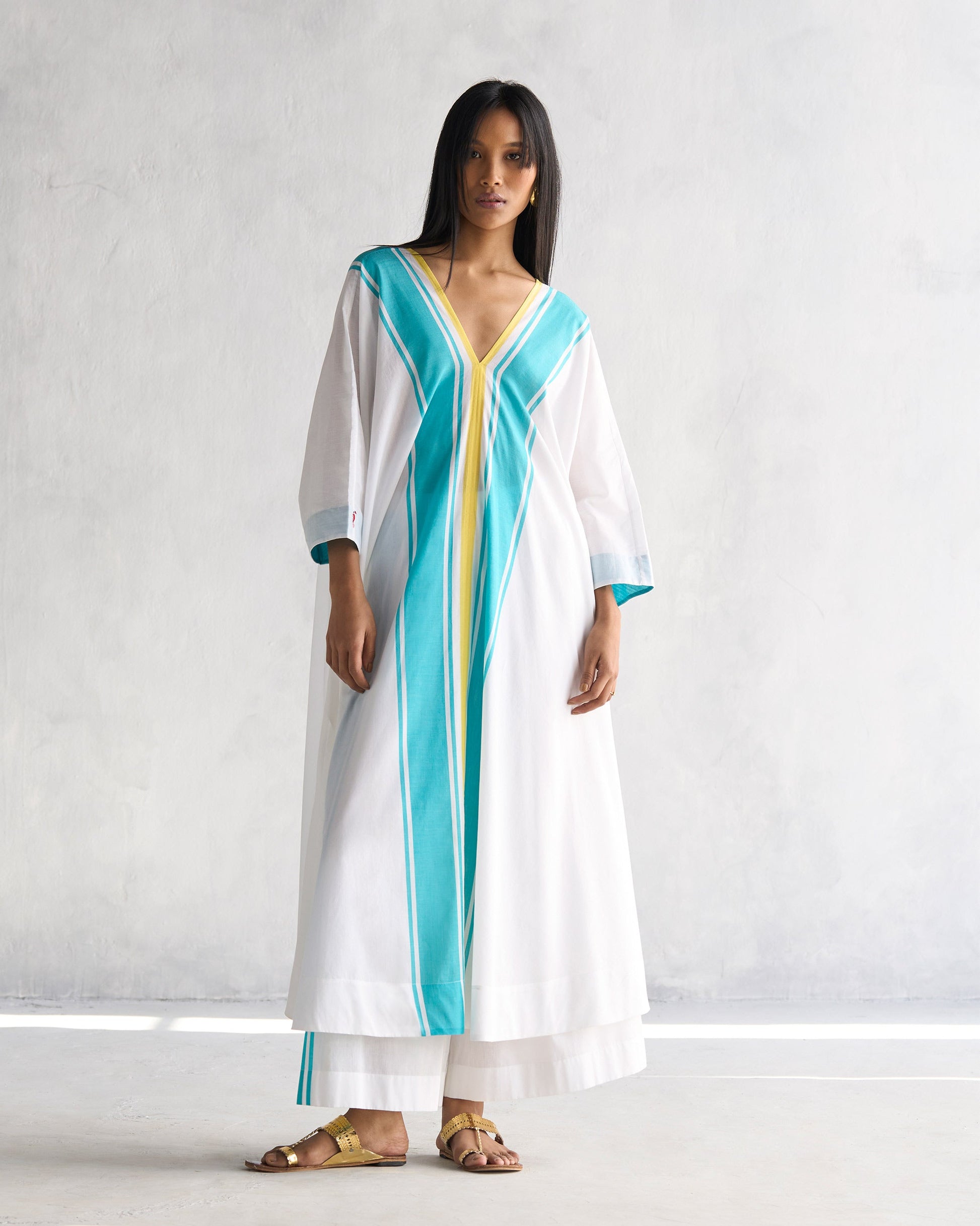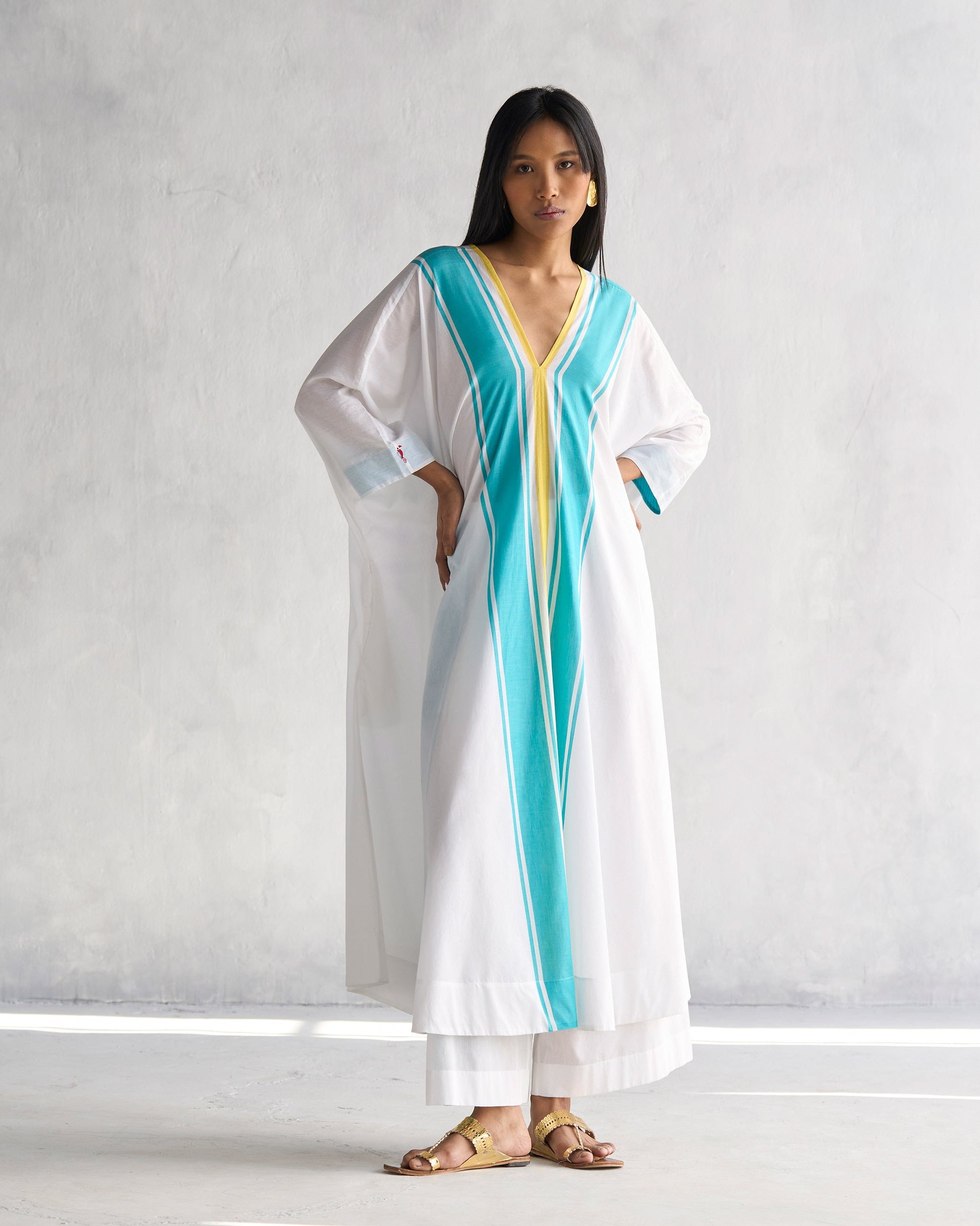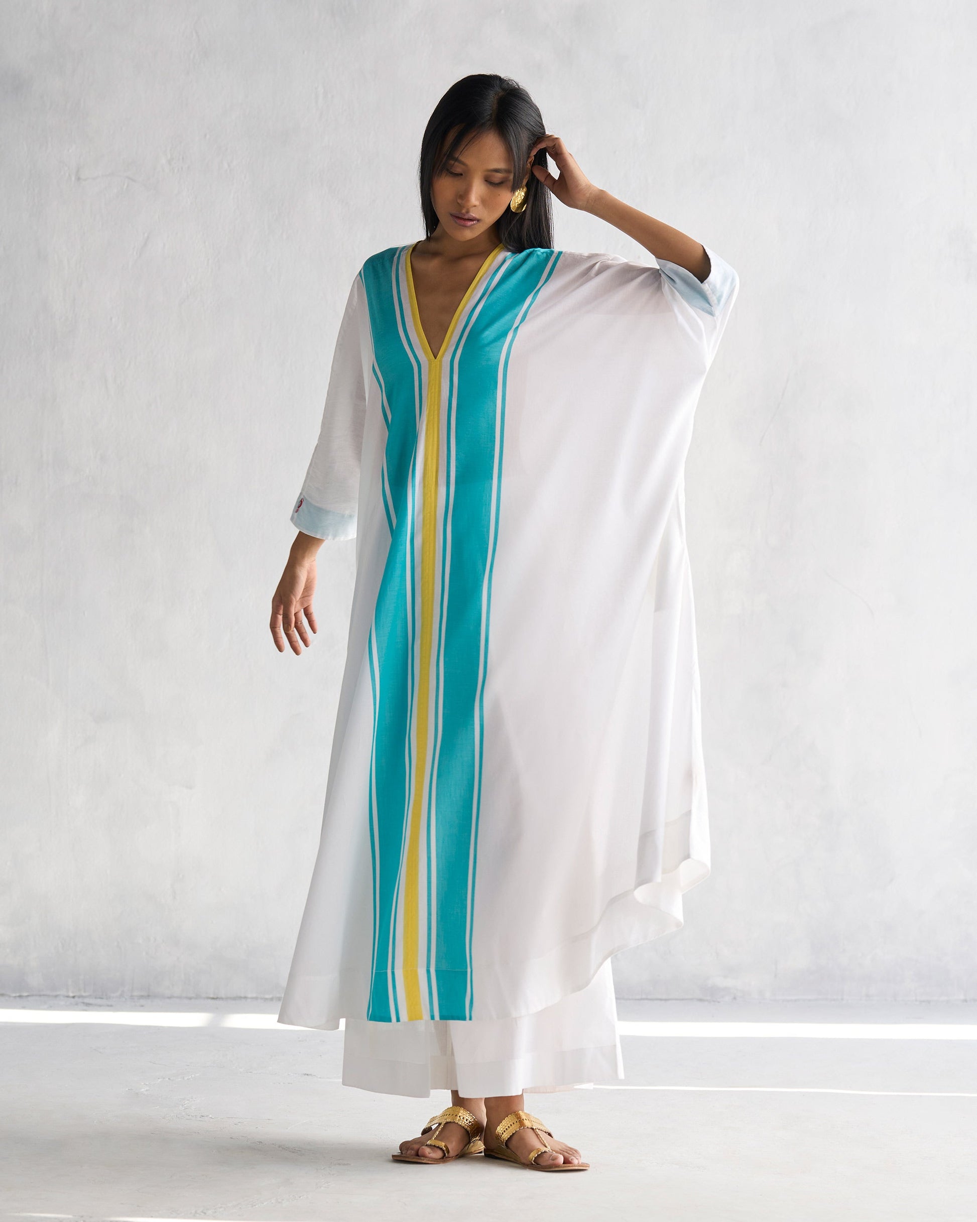 - In soft yarn dyed cotton, this kaftan will leave you feeling light as air.