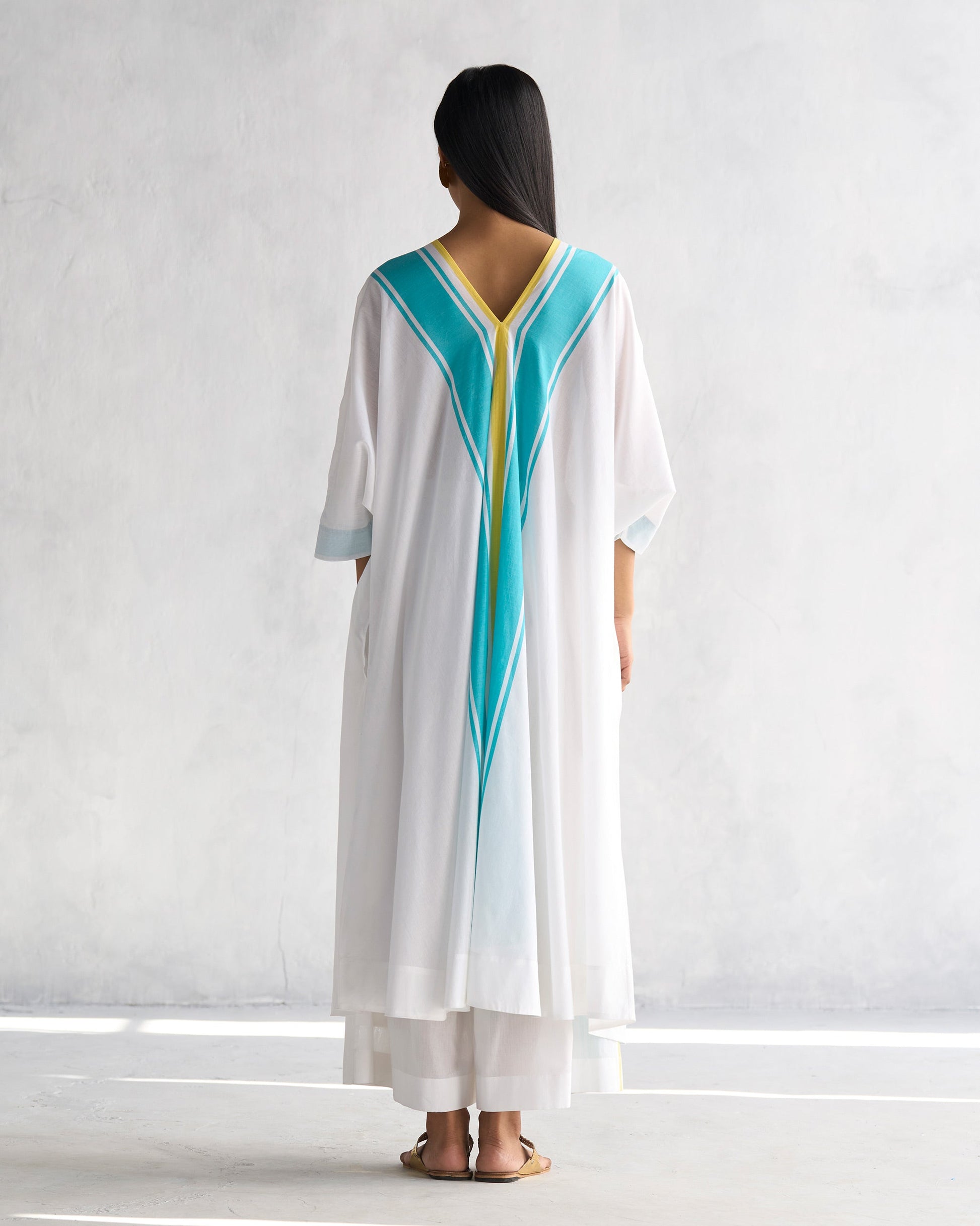 - Whether you're lounging at the beach or at a garden party, Sugato Kaftan¡¯s yellow, blue and white palette lets you effortlessly transition from day to night.
