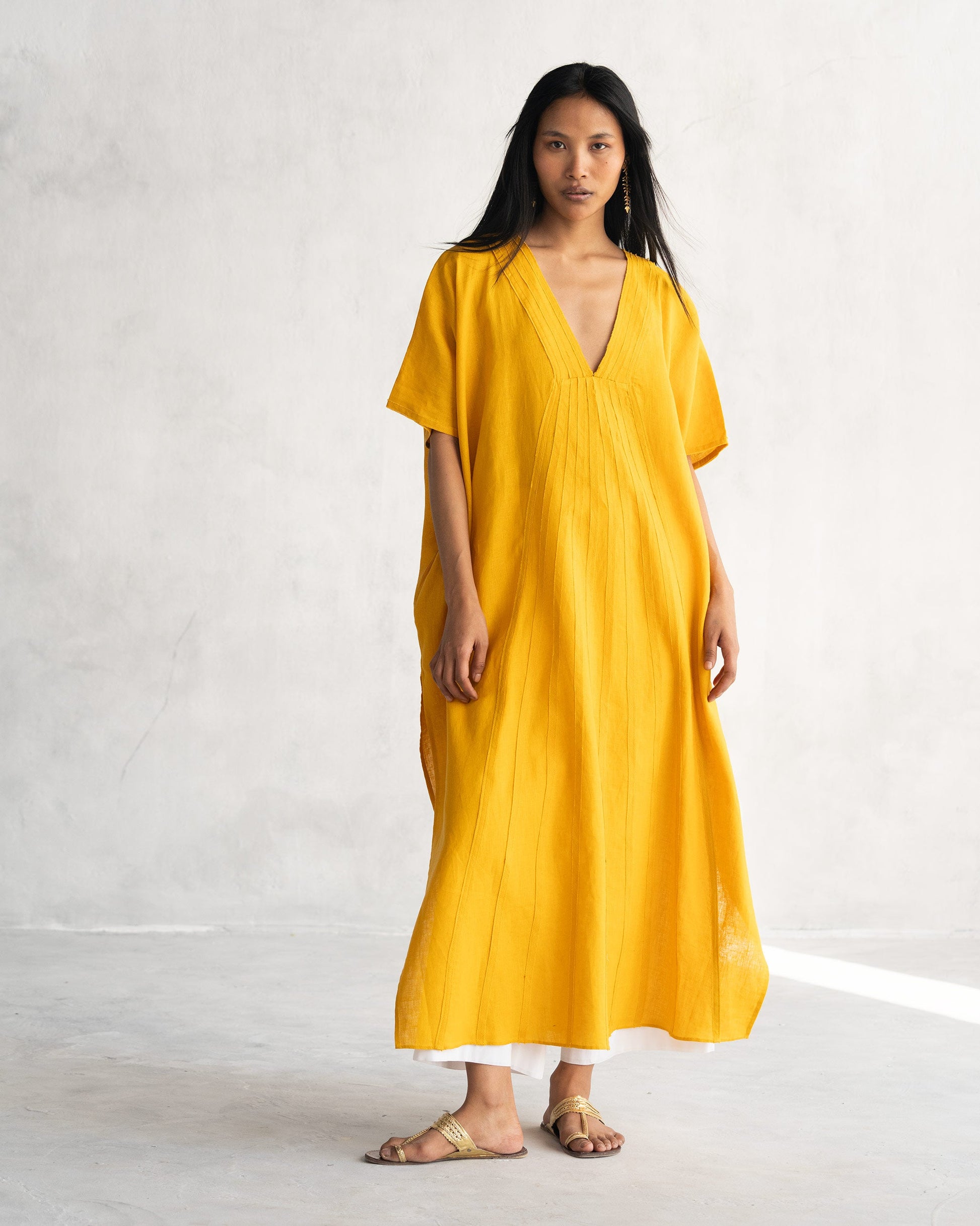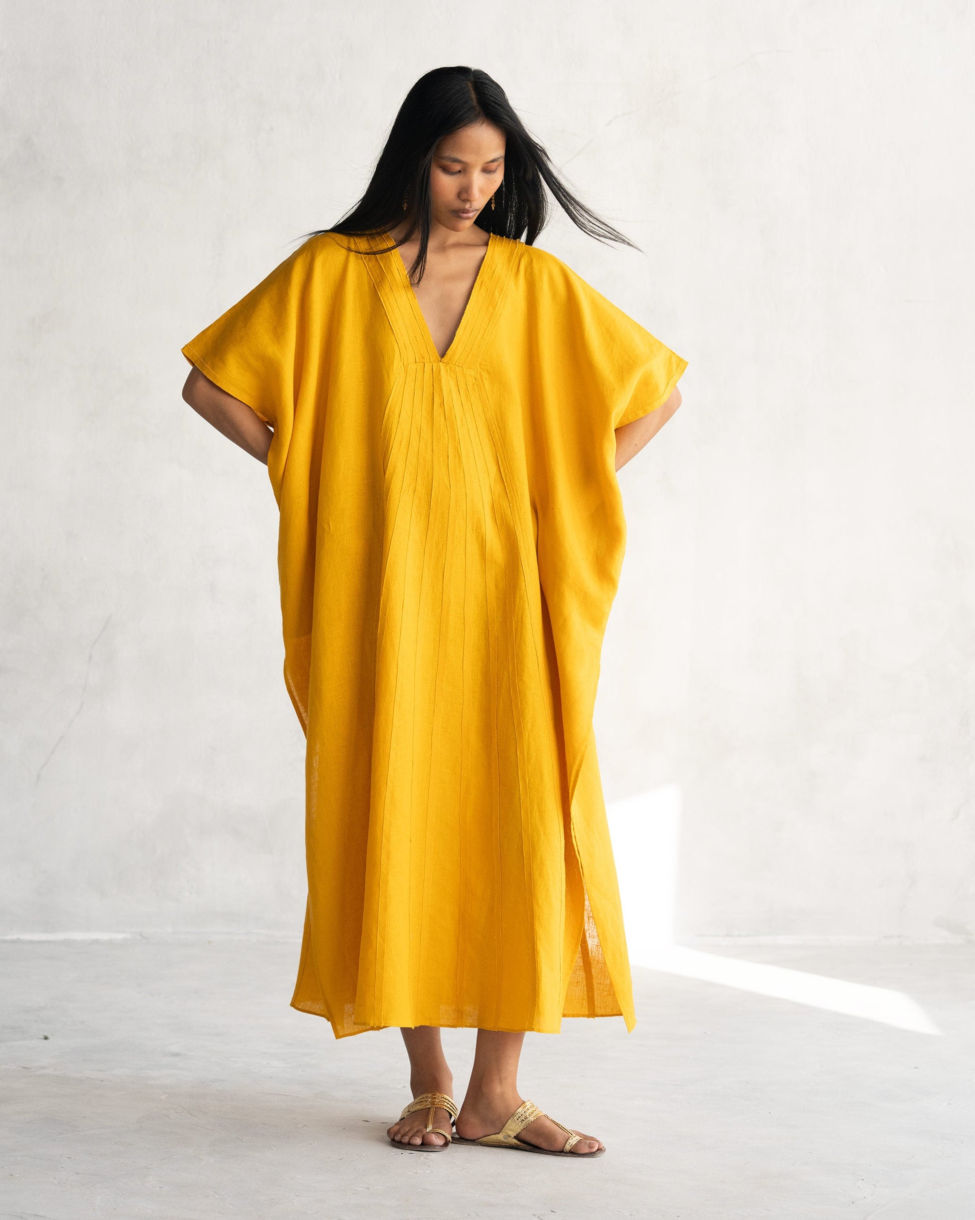 - Kaftans for summer? Sign us up. Consciously crafted in 100% breathable linen, this one is easy on your skin and even easier on Mama Earth.