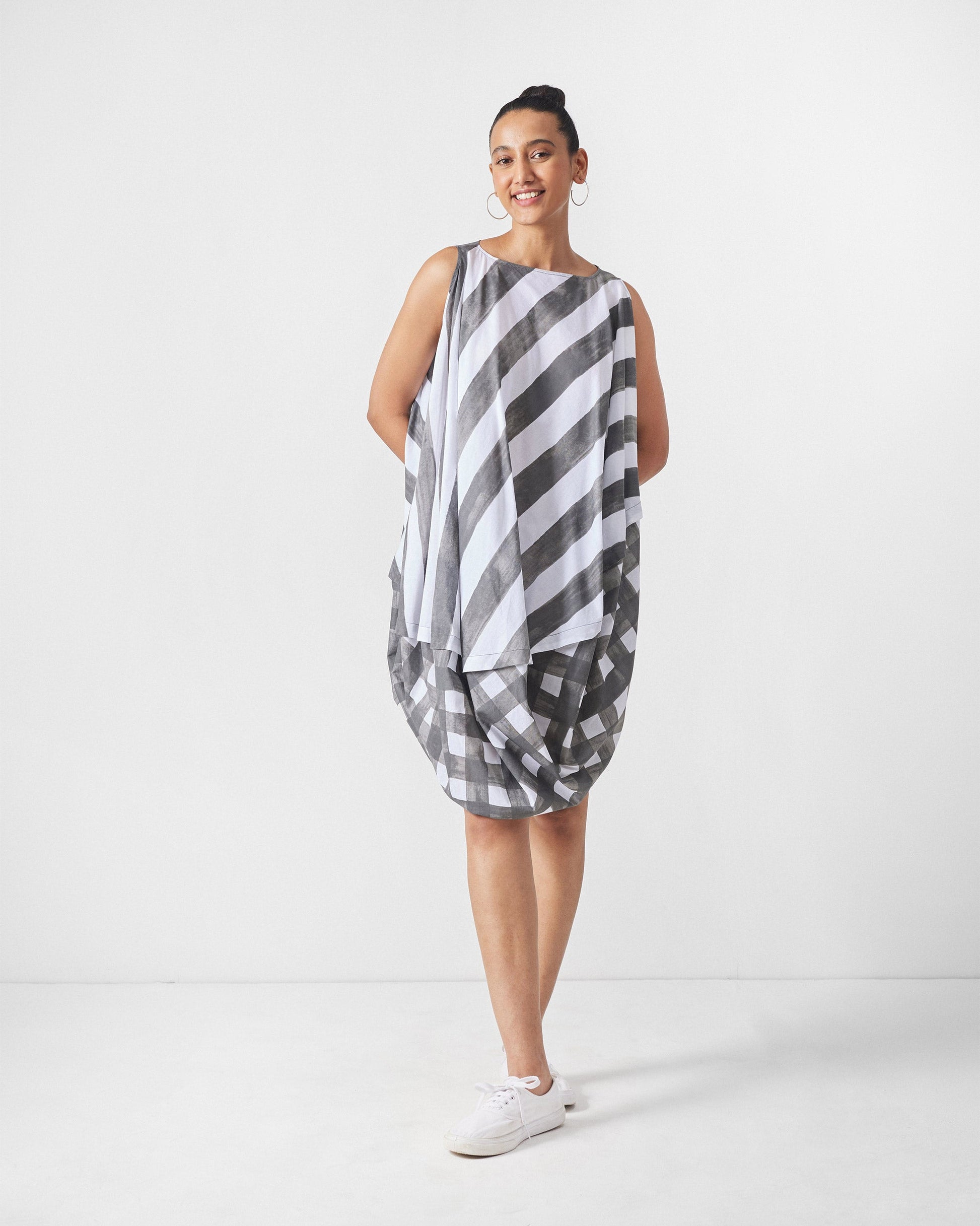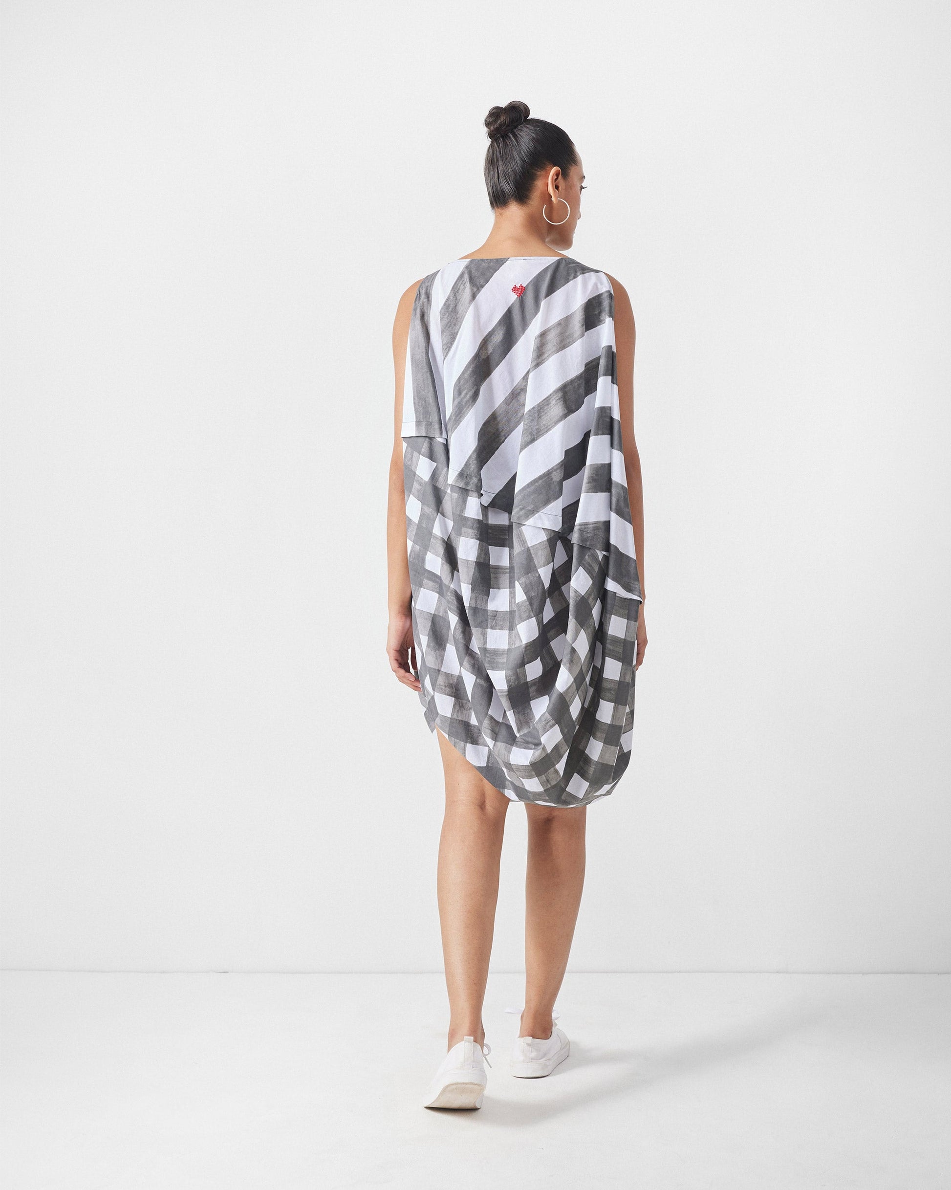 - The Yin Yan Dress plays with duality¡ªstriped up top, checked at the hem, and finished with an offbeat asymmetrical edge.