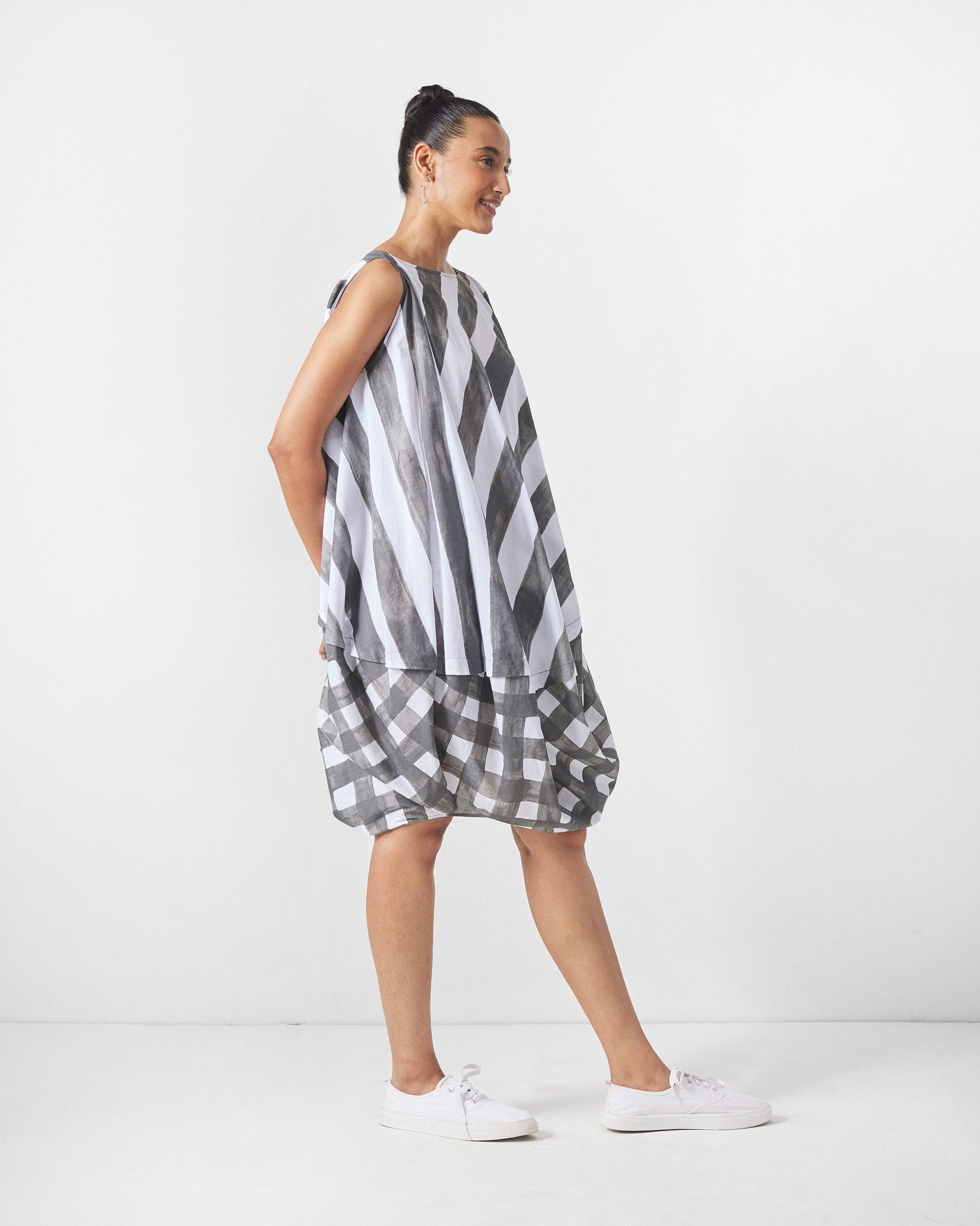 Yin Yan Dress - Charcoal & White Print